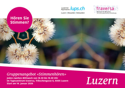 Jeden zweiten Mittwoch von 18.30 bis 19.30 Uhr trifft sich die Stimmenhörgruppe im Kursraum des Tageszentrums von traversa in der Tribschengasse 6 in Luzern.